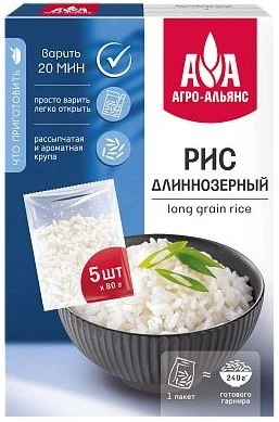 Рис длиннозерный в варочных пакетах (5х80 г) Агро-Альянс