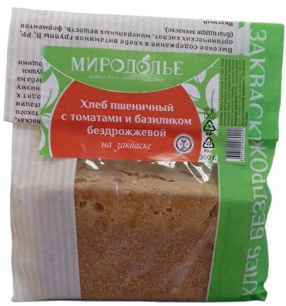 Хлеб бездрожжевой пшеничный с томатами и базиликом 300 г Миродолье