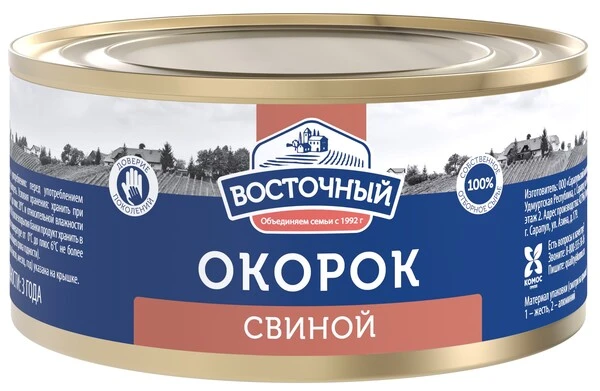 cвинина, вода питьевая, загустители (крахмал картофельный, каррагинан из водорослей Eucheuma), соль, стабилизатор (пирофосфат калия), регулятор кислотности (трифосфат натрия пятизамещенный), сахара (декстроза, мальтодекстрин, лактоза), антиокислитель (аскорбат натрия), ароматизаторы, смесь посолочно-нитритная (соль, фиксатор окраски (нитрит натрия), агент антислеживающий (ферроцианид калия)), перец черный молотый, лавровый лист молотый, усилитель вкуса и аромата (глутамат натрия однозамещенный), гидролизованный растительный белок (соевый).