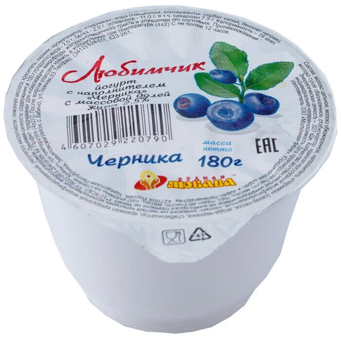 Йогурт с черникой 2,5% 180 г Родная Любава
