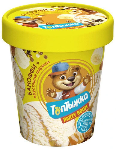 Пломбир ванильный 12% Баноффи с шоколадными шариками 270 г Топтыжка